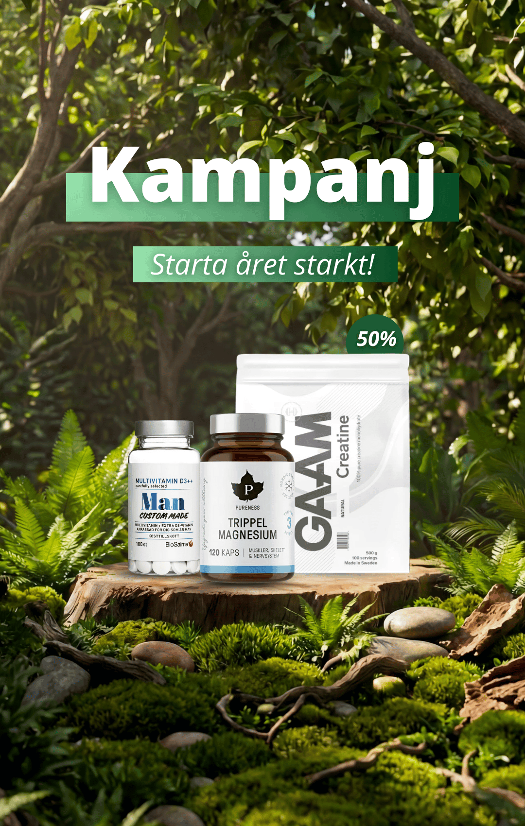 Vi erbjuder ett brett sortiment som inkluderar dagliga vitaminer som Vitamin D3 och Omega-3, superfoods som matcha och chiafrön och kreatin för träningsentusiaster. Våra produkter är noggrant utvalda för att tillgodose både nybörjare och erfarna hälsoentusiaster. Vi ser till att du har tillgång till naturliga och högkvalitativa produkter för att bygga en hållbar hälsosam livsstil.